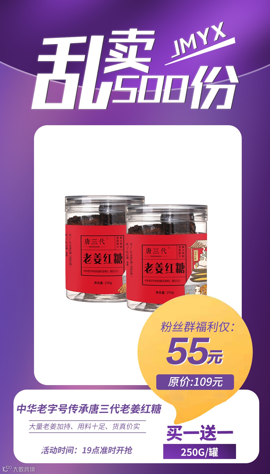 中华老字号传承唐三代老姜红糖250g/罐(买一送一) 原价:109元 粉丝群补贴价:55元
