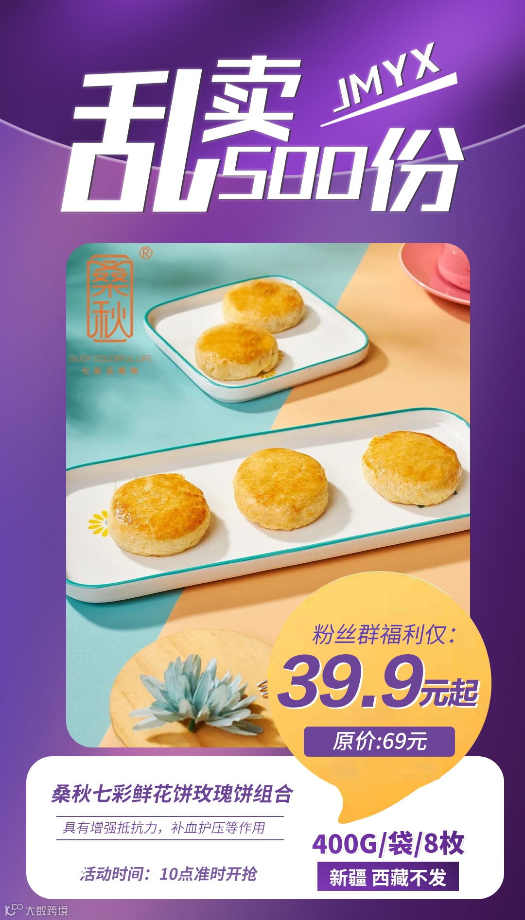 东方甄选推荐桑秋七彩鲜花饼玫瑰饼组合400g/袋/8枚 原价:69元 粉丝群补贴价:39.9元起