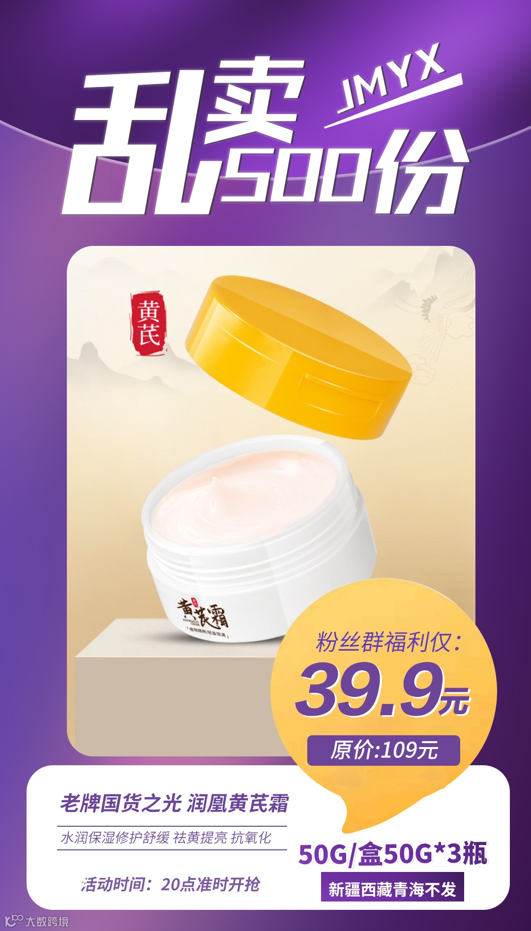 老牌国货之光 润凰黄芪霜50g/盒50g*3瓶 原价:109元 粉丝群补贴价:39.9元