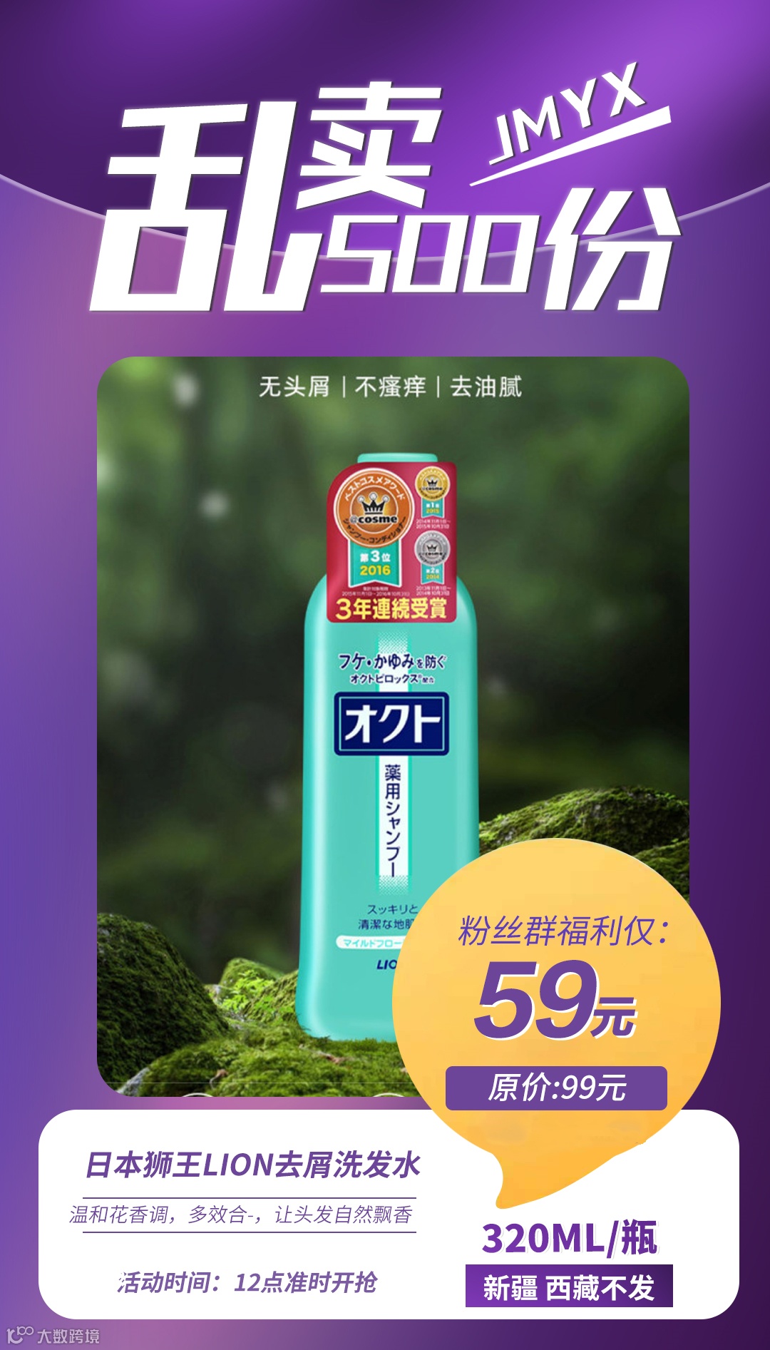 日本狮王lion去屑洗发水无硅控油清爽洗发露洗头膏320ml 原价:99元 粉丝群补贴价:59元