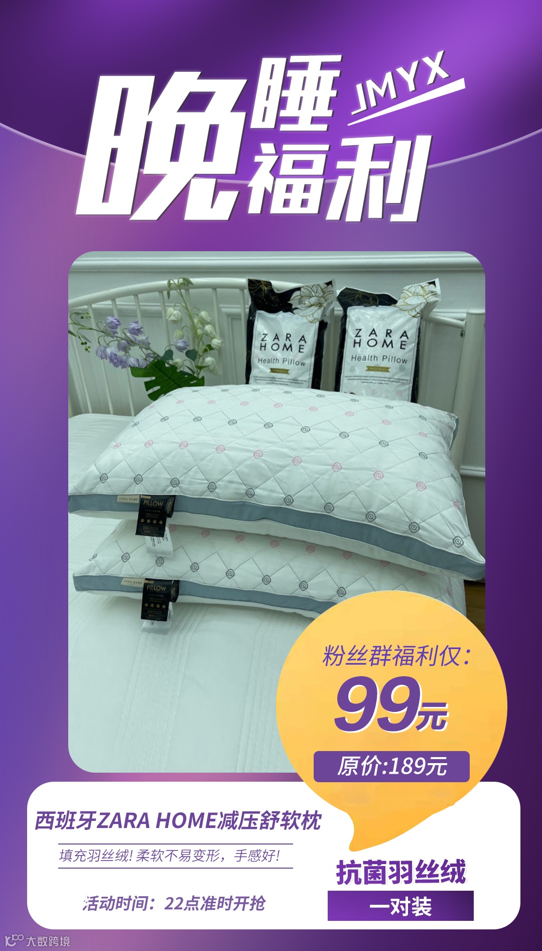 西班牙ZARA HOME减压舒软枕一对装(抗菌羽丝绒) 原价:189元 粉丝群补贴价:99元