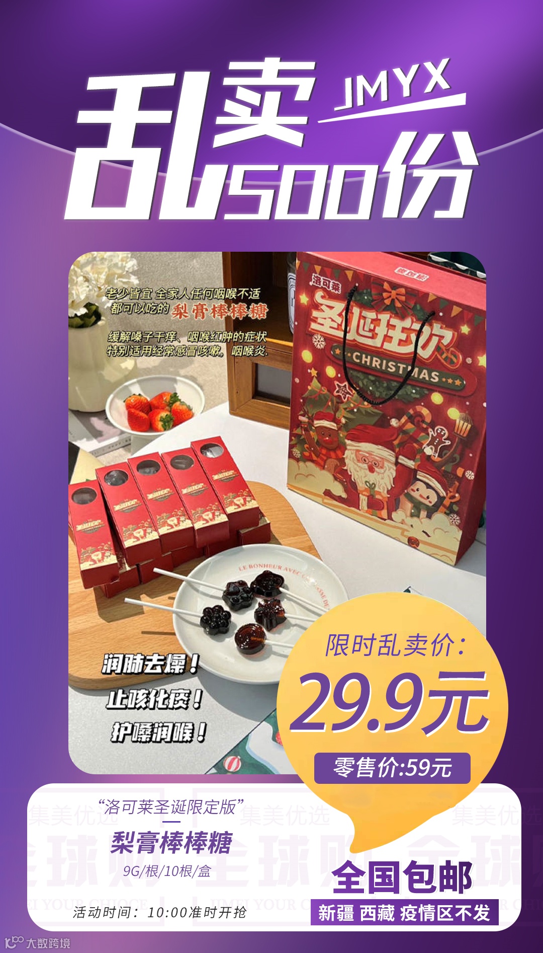 【粉丝群补贴】洛可莱圣诞限定版 梨膏棒棒糖9g/根/10根/盒 原价:59元 粉丝群补贴价:29.9元