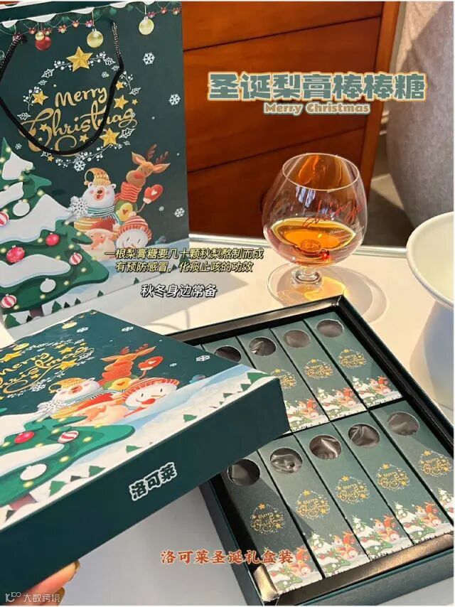 【 洛可莱圣诞梨膏棒棒糖】梨膏糖由多种成分组成,适量食用可调节身体机能,具有美容养颜的作用。