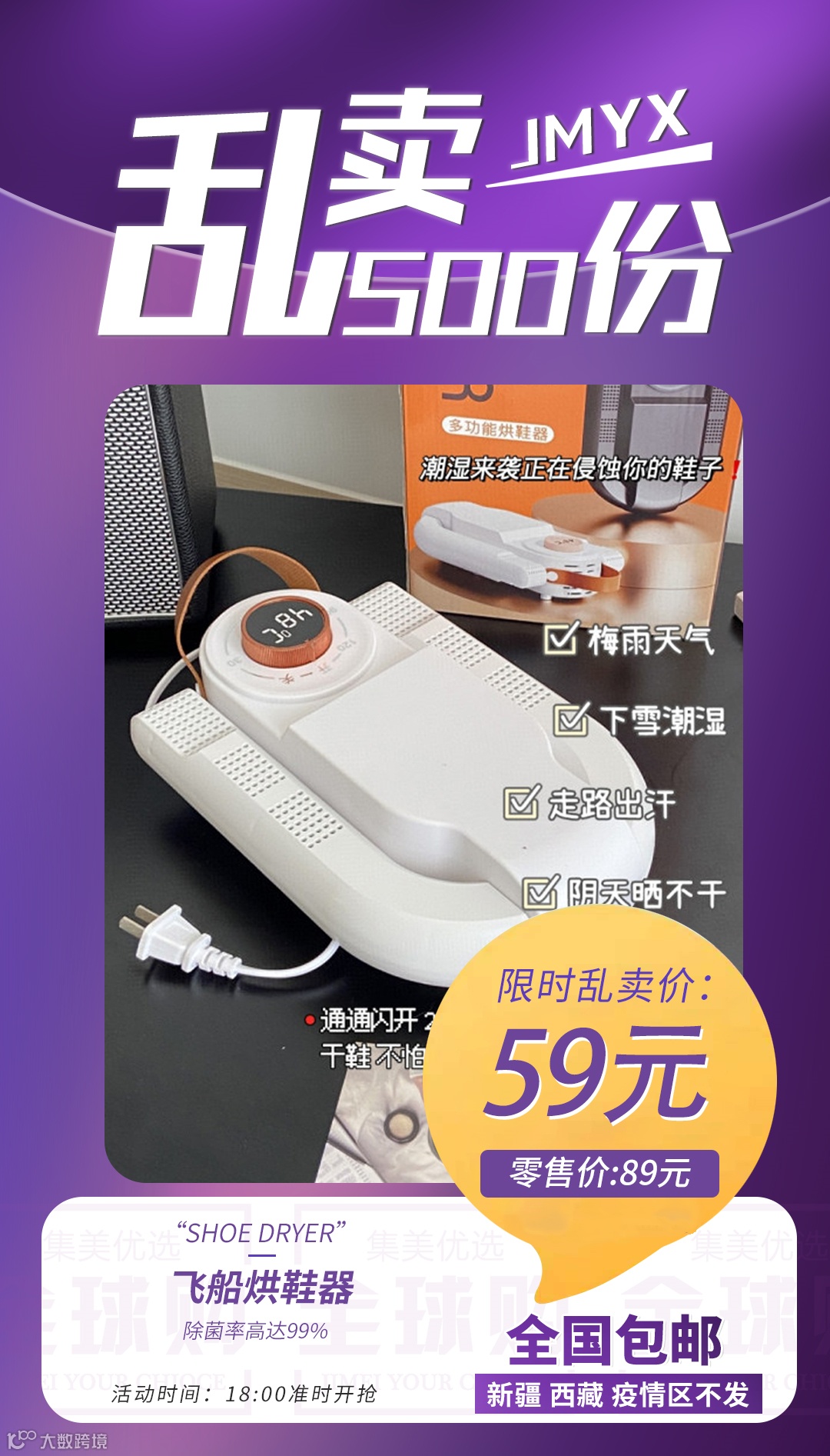 【粉丝群补贴】SHOE DRYER飞船烘鞋器 除菌率高达99% 原价:89元 粉丝群补贴价:59元