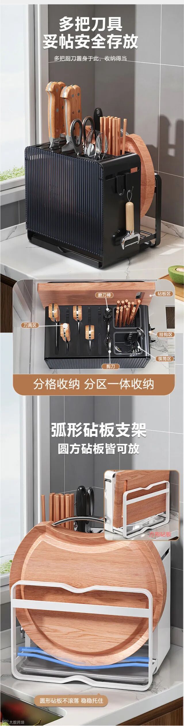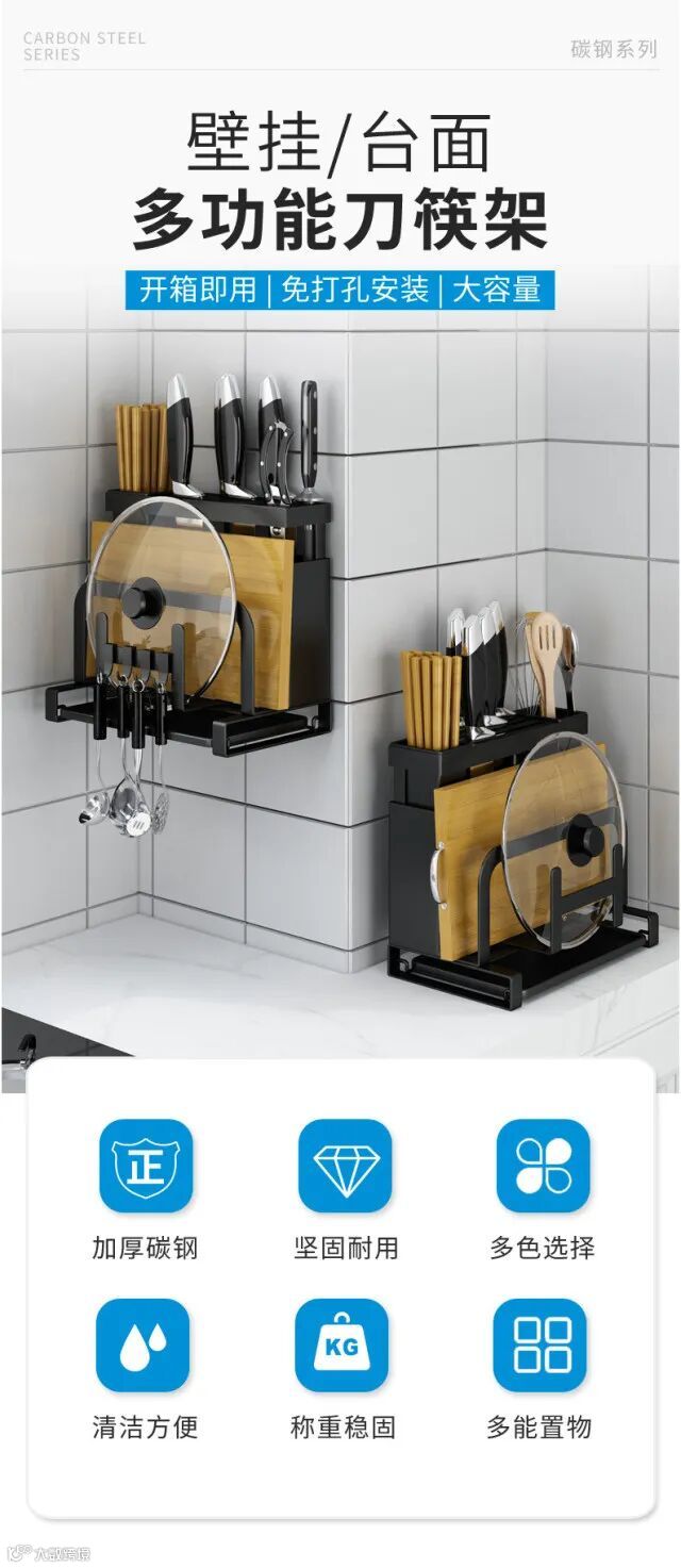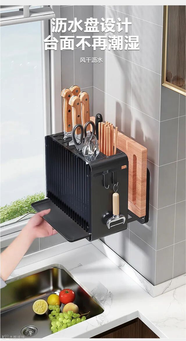【家居用品】厨房刀架免打孔壁挂式家用多用途一体