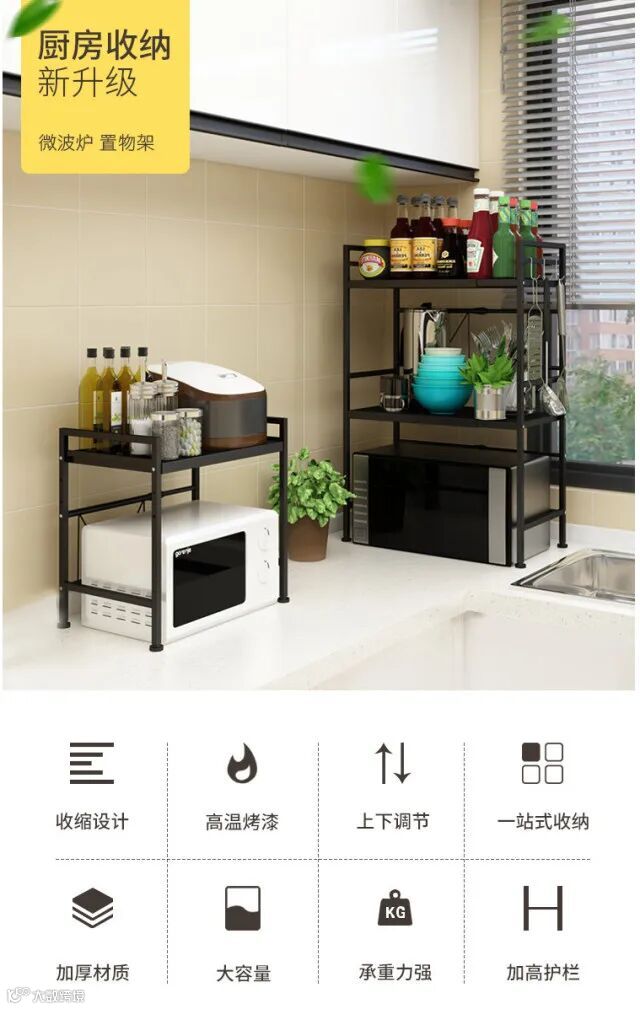 【家居用品】厨房微波炉置物架台面可伸缩微波炉架