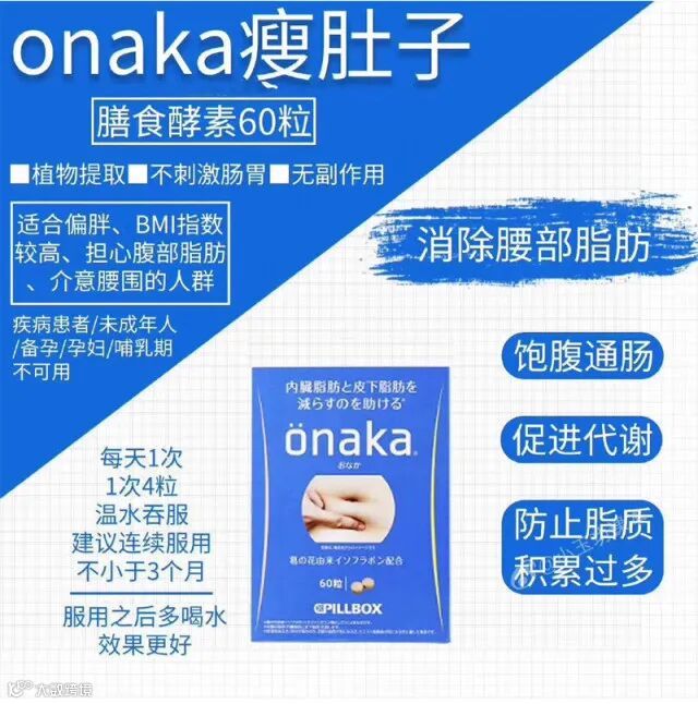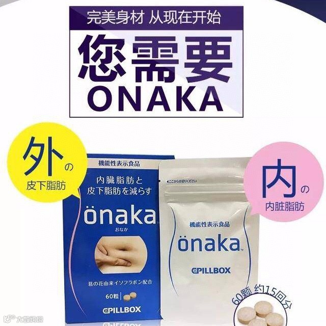 onaka减腹 只想瘦肚子,不想让胸,屁股瘪的,吃这个,每天4粒,一盒60粒!腹部赘肉粉碎机!专门瘦肚子的一款营养素,吃后不会有不良反应,因为不属于药类,是天然健康的辅助膳食。建议饭后或是睡前吃。一盒可吃15天,6盒一个疗程。