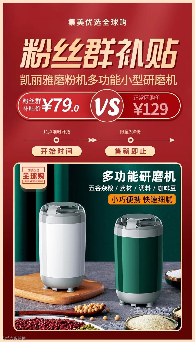 【粉丝群补贴】凯丽雅 304不锈钢磨粉机家用多功能小型研磨机 原价:129元 粉丝群补贴价:79元