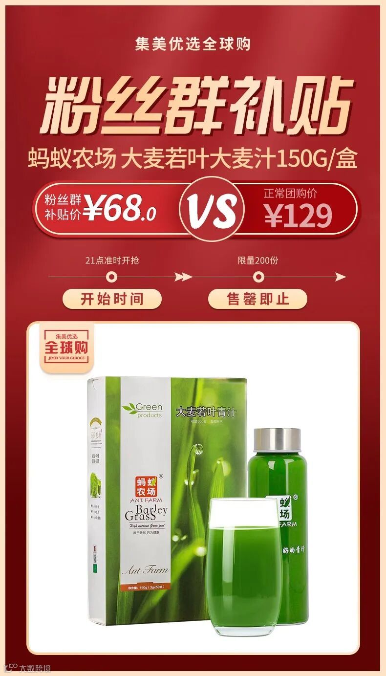 【粉丝群补贴】蚂蚁农场 大麦若叶青汁大麦汁150g*1盒(3g*50包) 原价:129元 粉丝群补贴价:68元