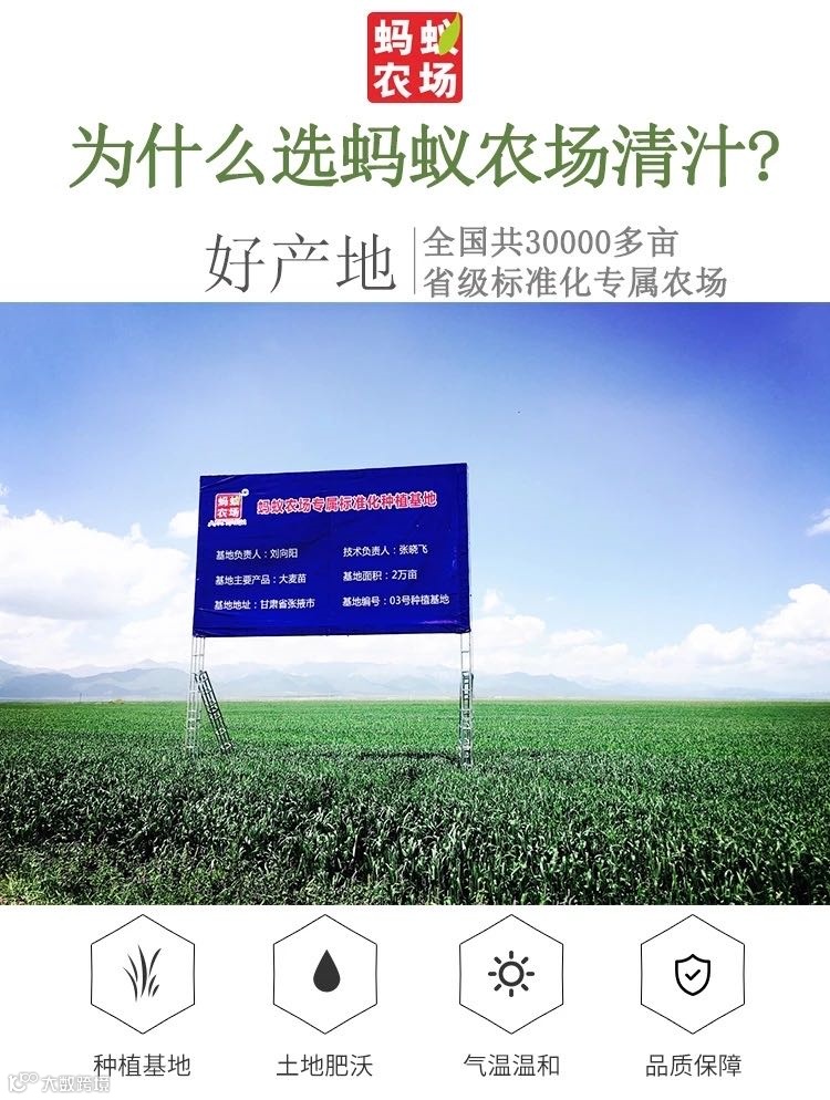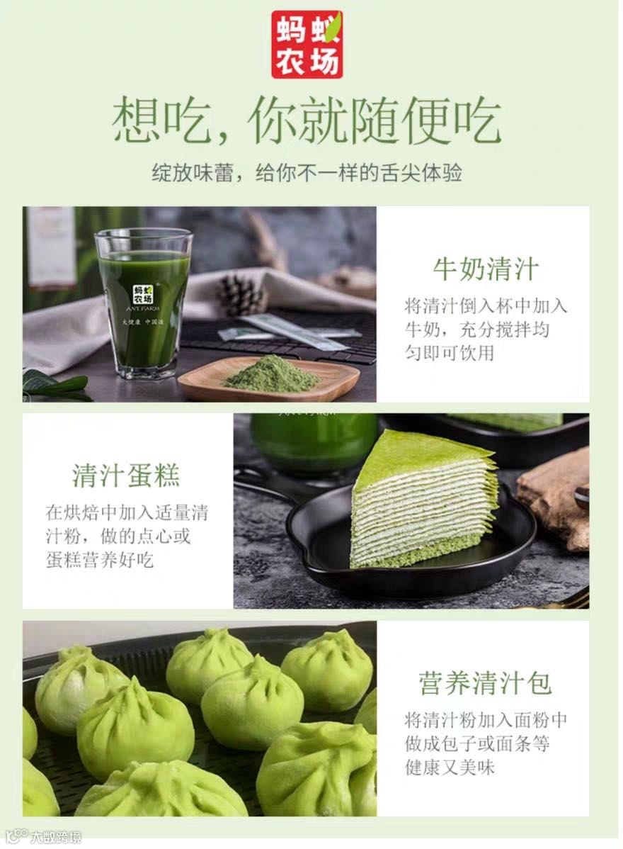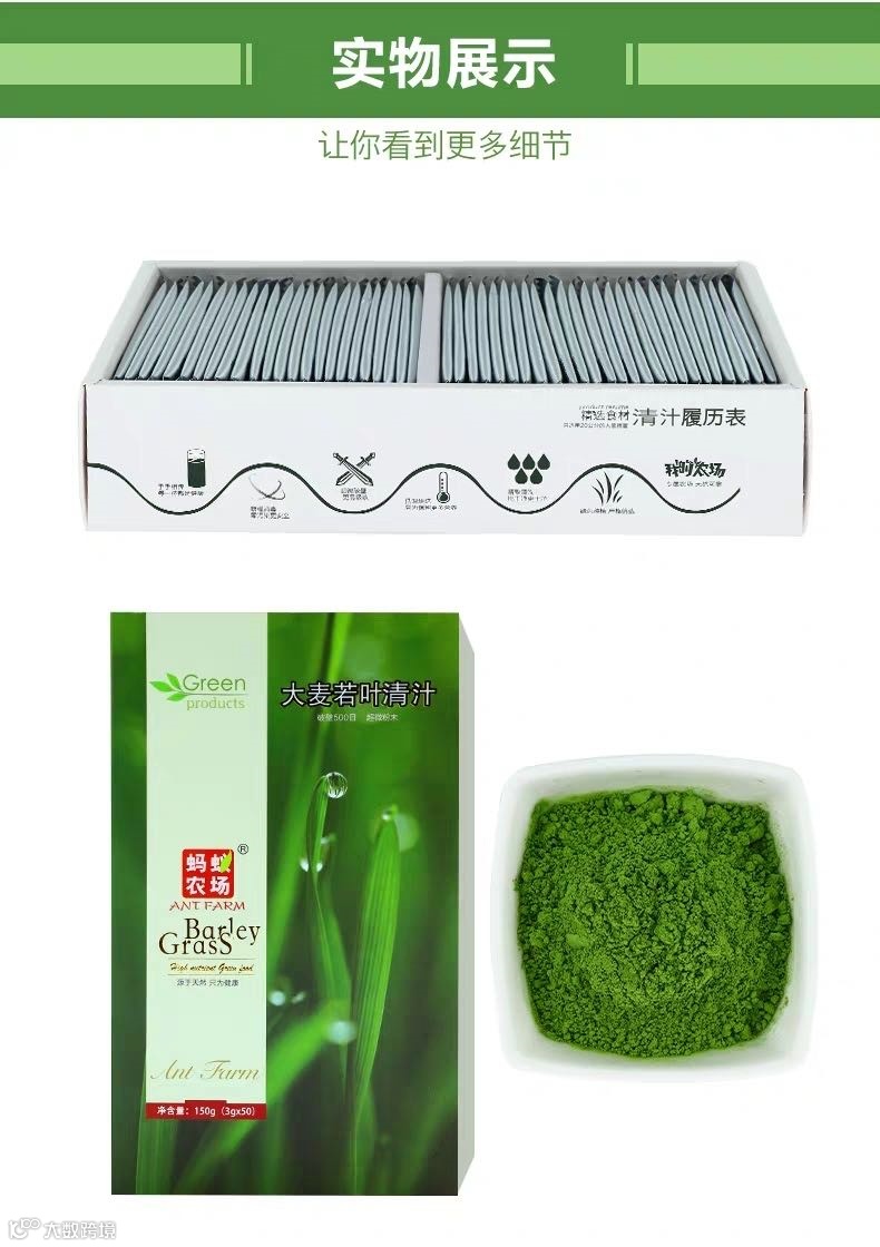 ??蚂蚁农场大麦青汁 ①排毒:通便秘、除口气、清肠②祛痘淡斑、提亮肤色③调节内分泌④瘦身:瘦小肚腩,啤酒肚控重、排油脂⑤解酒,护肝,降三高早上起来一定要喝一杯清汁?