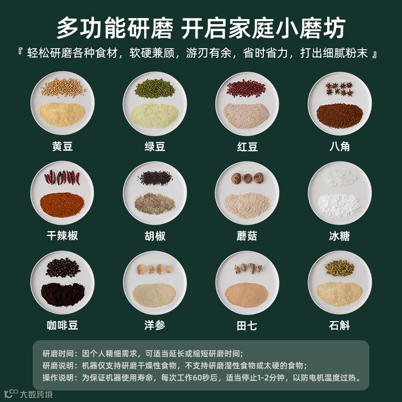 轻松研磨各种食材,软硬兼顾,游刃有余,省时省力,打出细腻粉末。