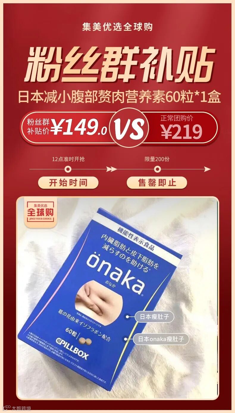 【粉丝群补贴】日本CPILLBOX ONAKA减小腹部赘肉内脏脂肪膳食营养素60粒*1盒 原价:219元