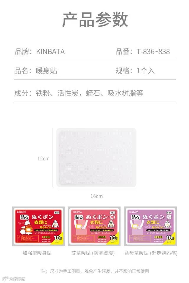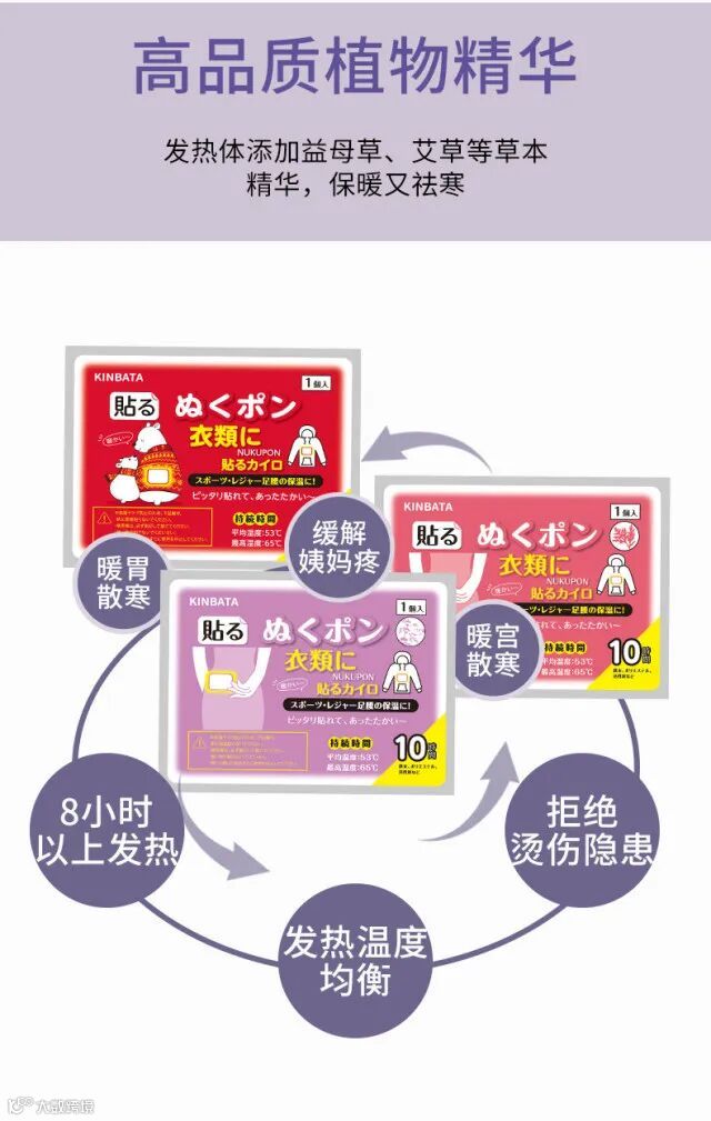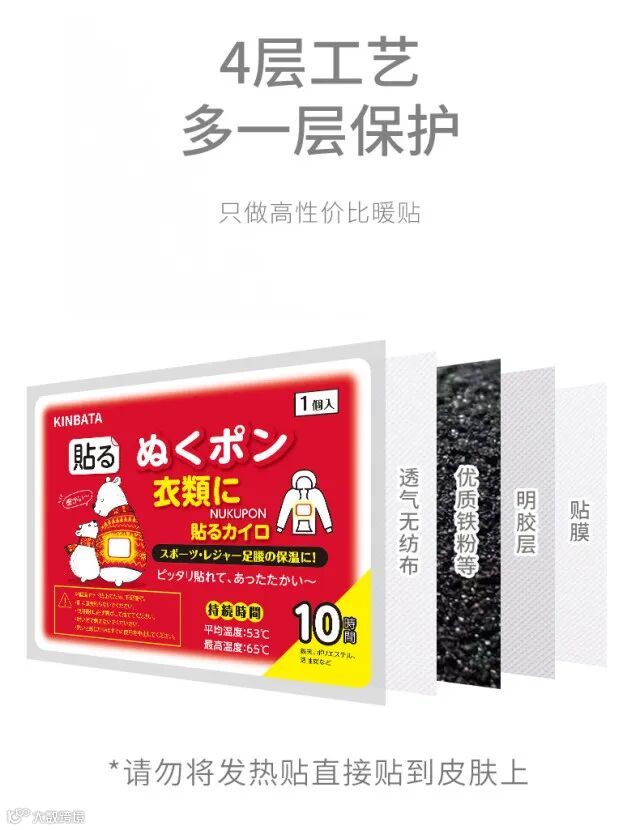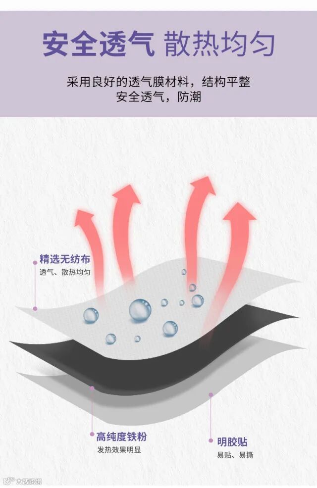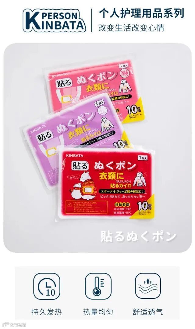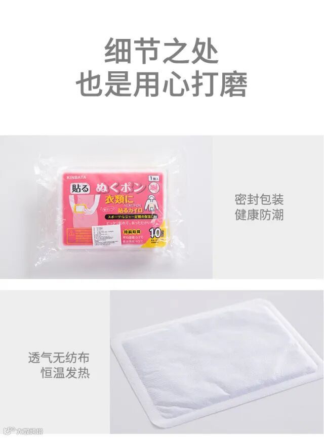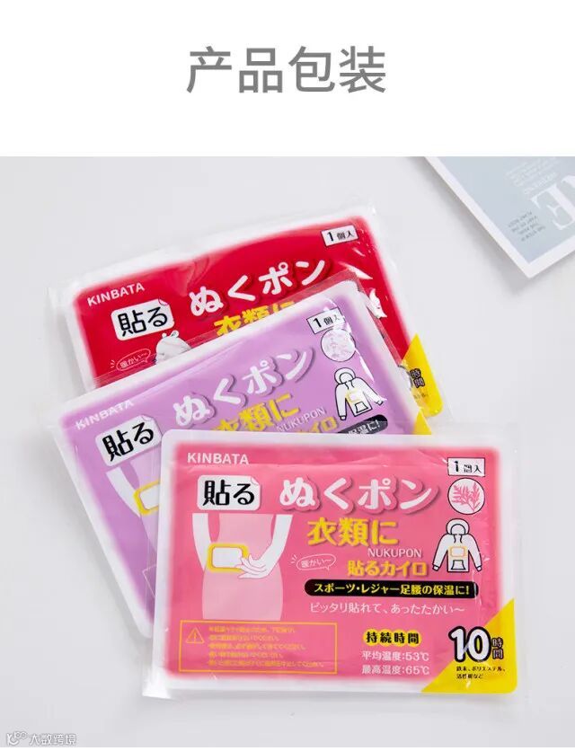 1.三款暖贴均为加强版,开袋迅速发热,长久持续发热8-10小时采用透气无纺布面料,背胶粘附性好不易脱漏,同时也不会留胶在衣物上,避免脱漏和留胶的尴尬。