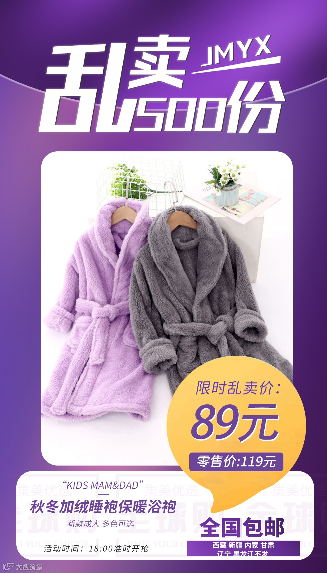 【粉丝群补贴】KIDS MAM&DAD秋冬加绒睡袍保暖浴袍新款成人 原价:119元 粉丝群补贴价:89元
