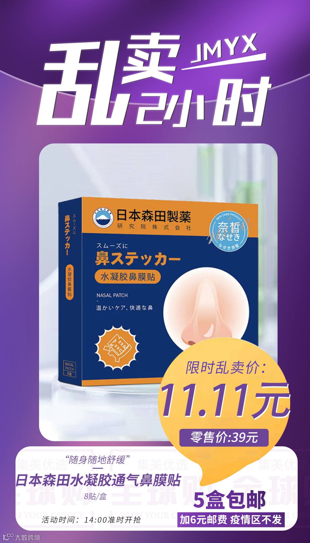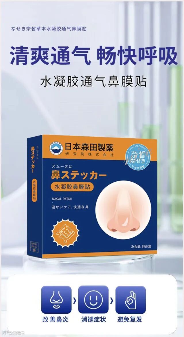 【粉丝群补贴·5盒包邮】日本森田水凝胶通气鼻膜贴8贴/盒