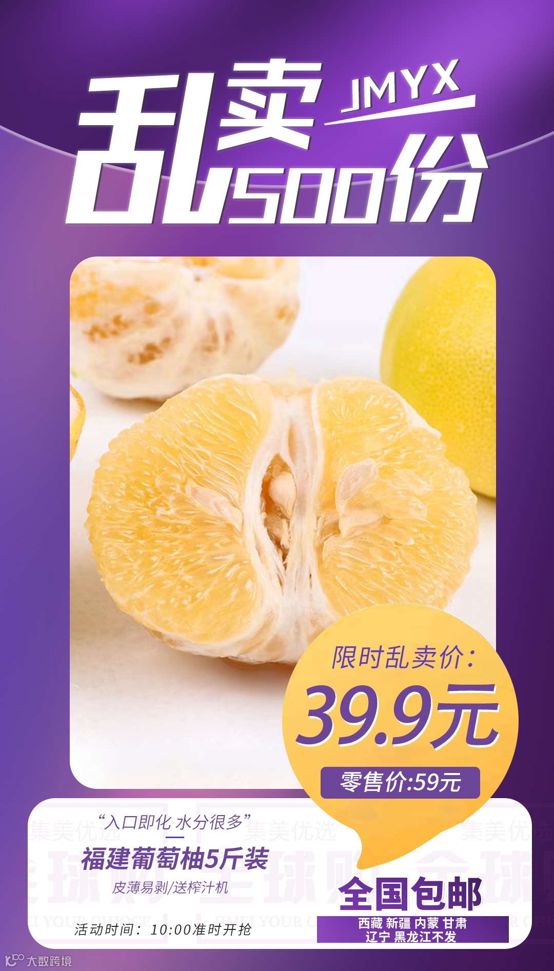 【粉丝群补贴】福建葡萄柚5斤装/皮薄易剥/送榨汁机