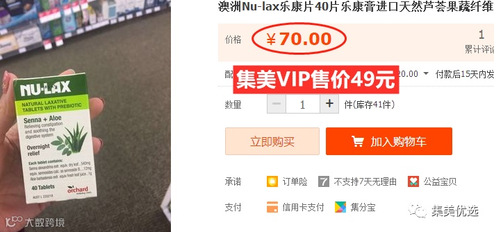 【大牌团购】澳洲NU-LAX乐康膏乐康片40粒 原价:69元
