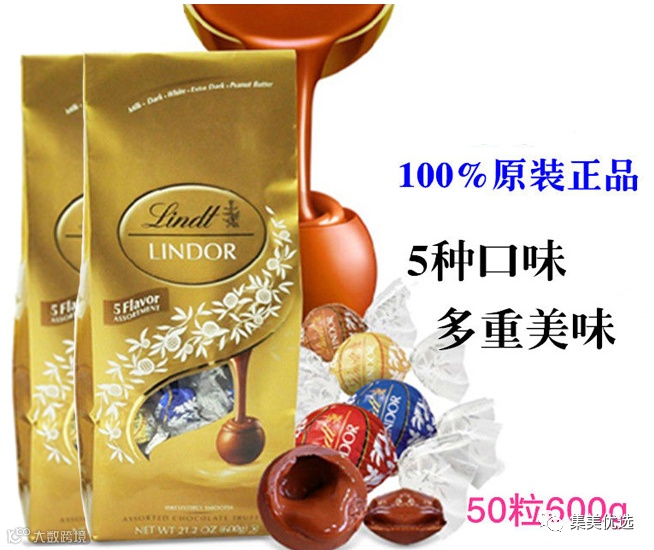 【大牌团购】 美国进口 瑞士莲混合5味巧克力软心球600g*1袋 原价:179元 大牌团购价:129元 瑞士莲巧克力,让你吃出幸福感!