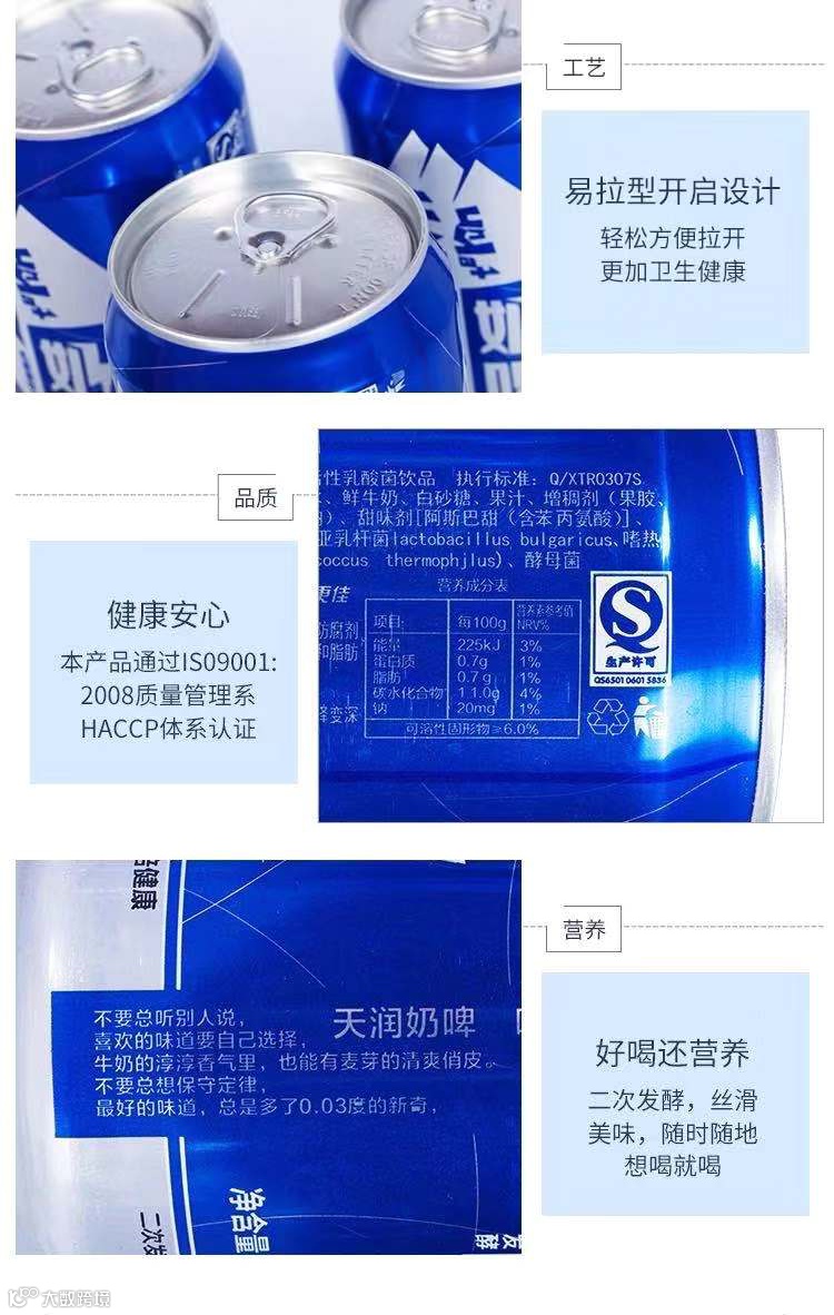【新疆专场】新疆天润奶啤酸奶含乳酸菌牛奶饮料 300ml*12罐整箱发货