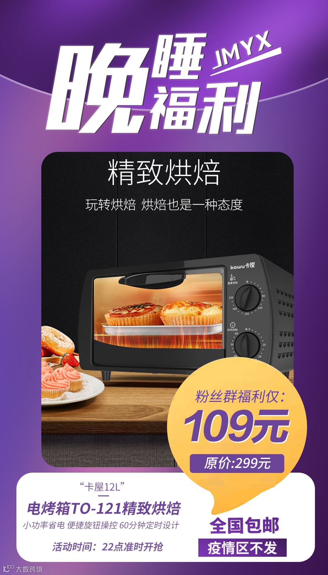 【晚睡福利】卡屋12L电烤箱TO-121精致烘焙(额定功率800W)