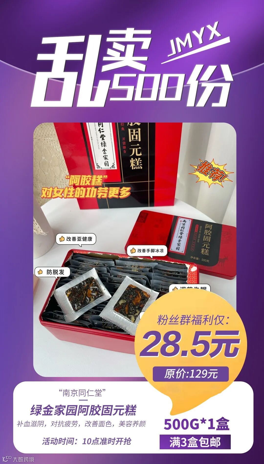 【乱卖500份*满3盒包邮】南京同仁堂绿金家园阿胶固元糕500g*1盒