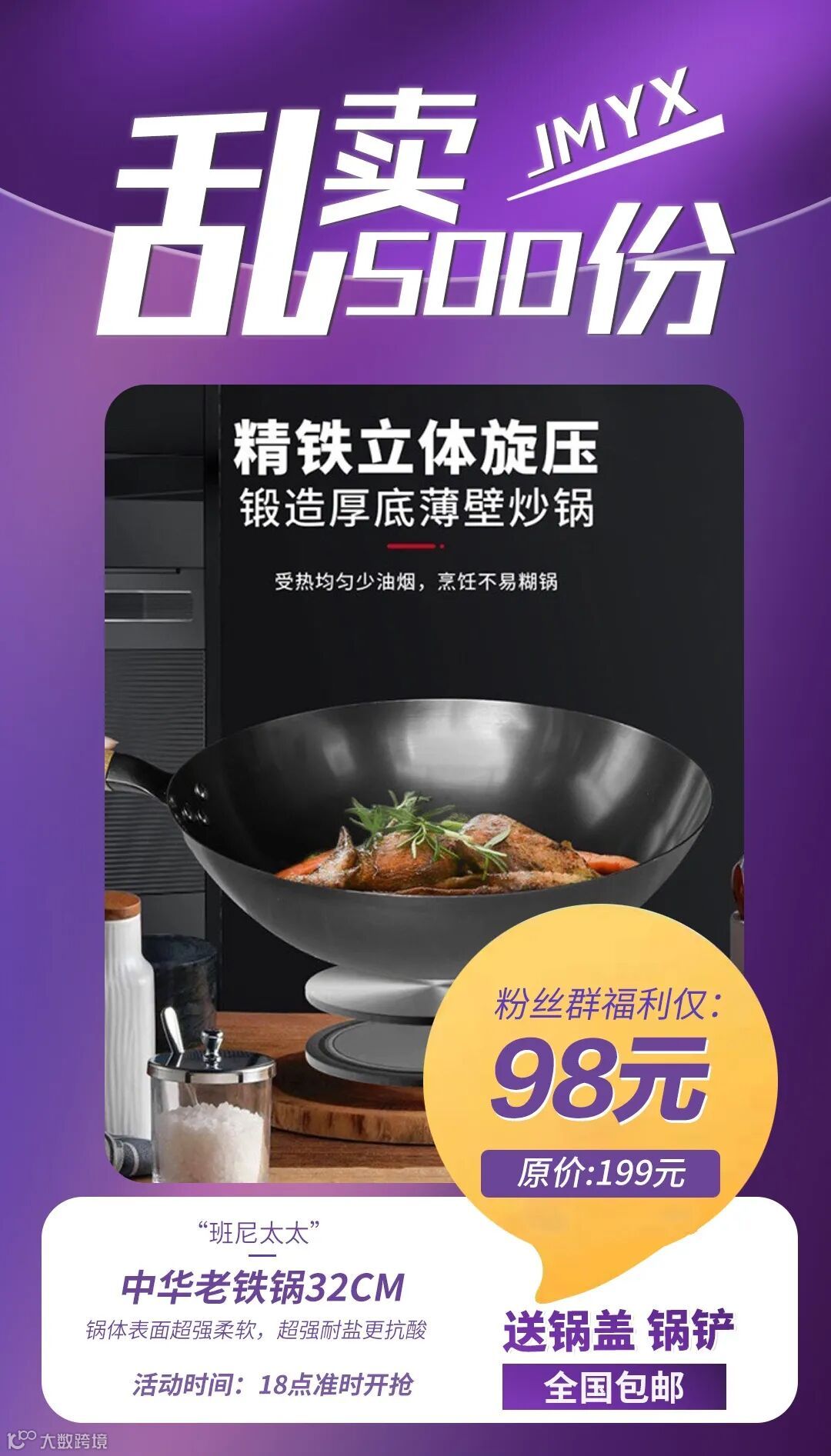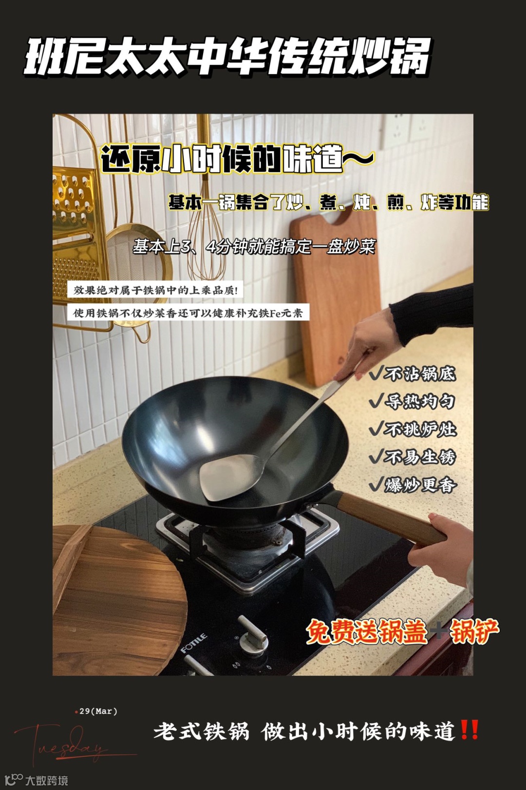 【乱卖500份】班尼太太 中华老铁锅32cm(送锅盖 锅铲)