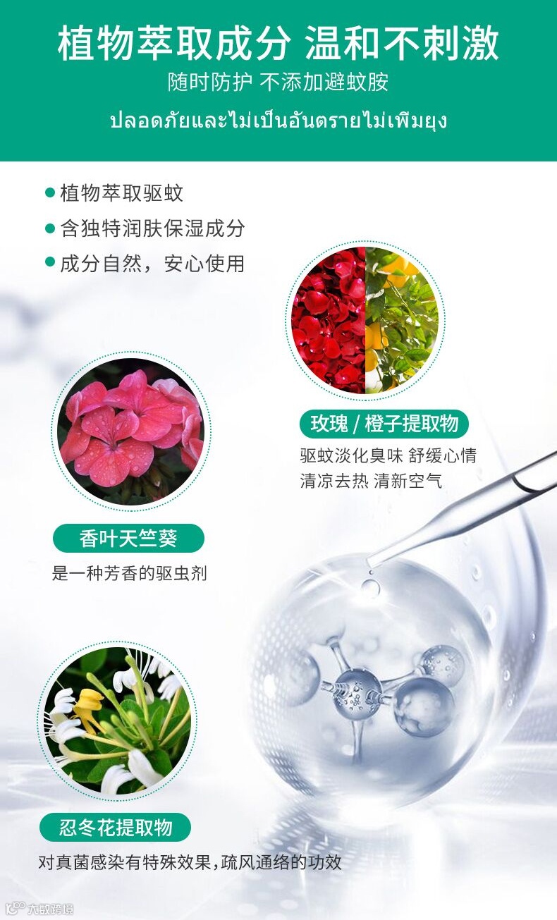 通过提取天然成分来达到驱蚊的效果,而且给人清新的感觉,因为是纯植物成分,也不会对动物和环境产生任何伤害。