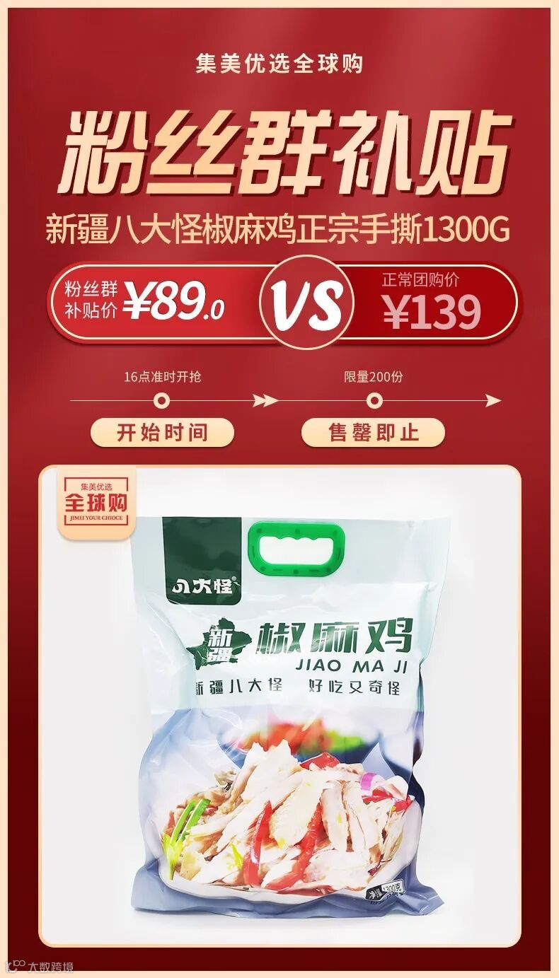 【粉丝群补贴】新疆八大怪椒麻鸡正宗手撕1300g 原价:139元 粉丝群补贴价:89元