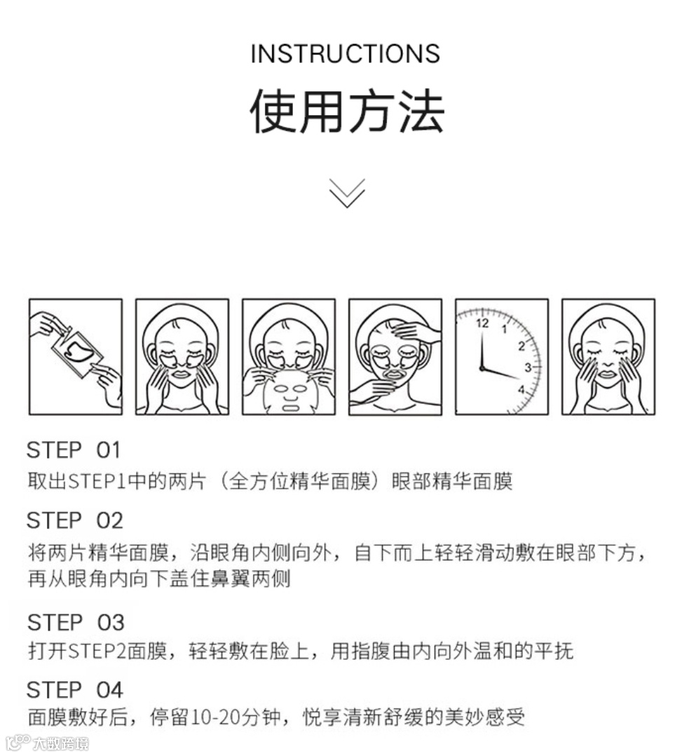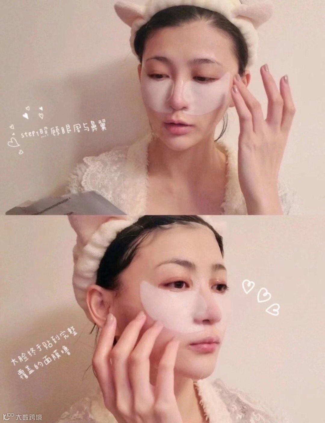 全脸贴虽然是超薄的面膜纸,但里面含有满满的精华液,建议躺敷。多余的精华涂抹在脖子或手臂之类的地方,有很好的补水效果~