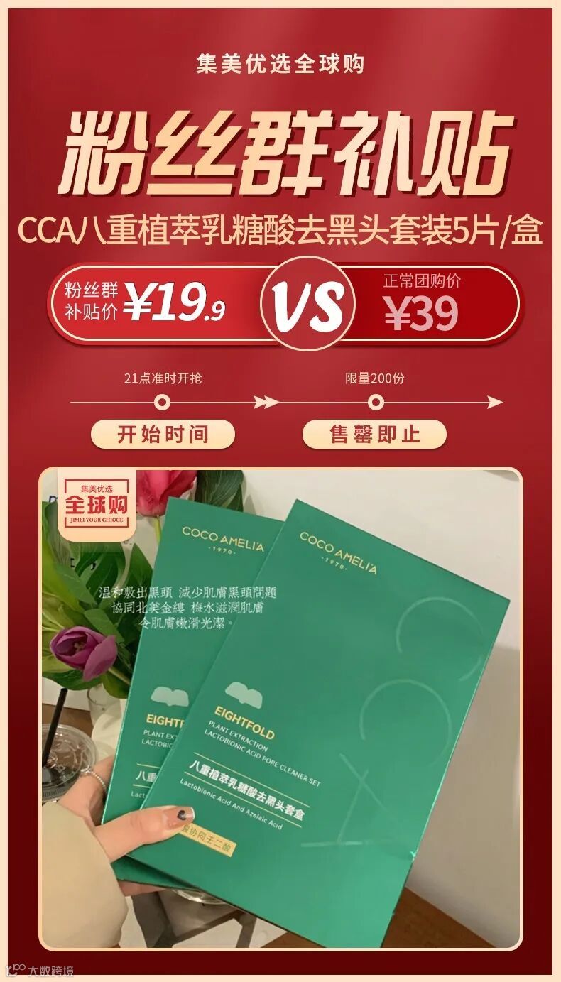 【粉丝群补贴】CCA八重植萃乳糖酸去黑头套装5片/盒 原价:39元 粉丝群补贴价:19.9元