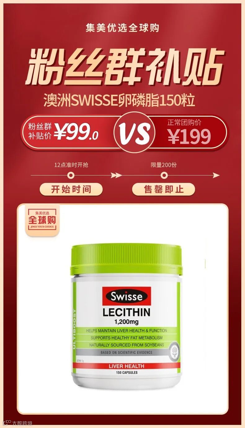 【粉丝群补贴】澳洲Swisse卵磷脂150粒 原价:199元