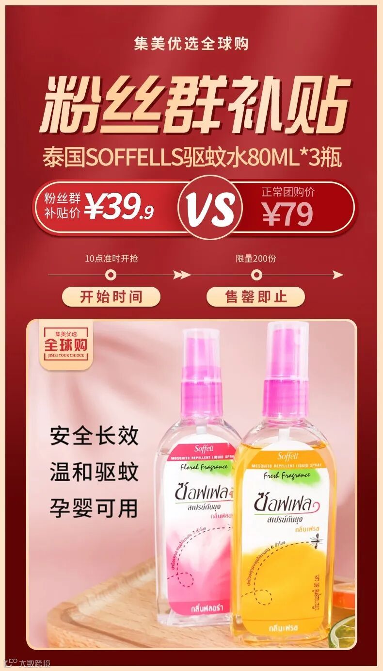 【粉丝群补贴】泰国soffells驱蚊水80ml*3瓶 玫瑰味香橙味可选 原价:79元 粉丝群补贴价:39.9元