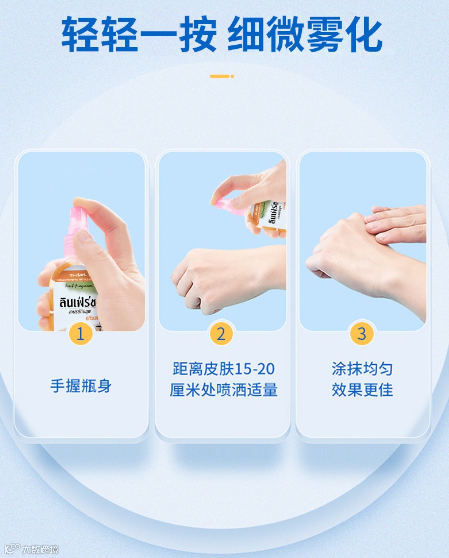 也可以在沐浴的时候喷入水中,沐浴驱蚊两不误,给全身清爽的感觉,还能360度保护肌肤不受蚊虫叮咬。