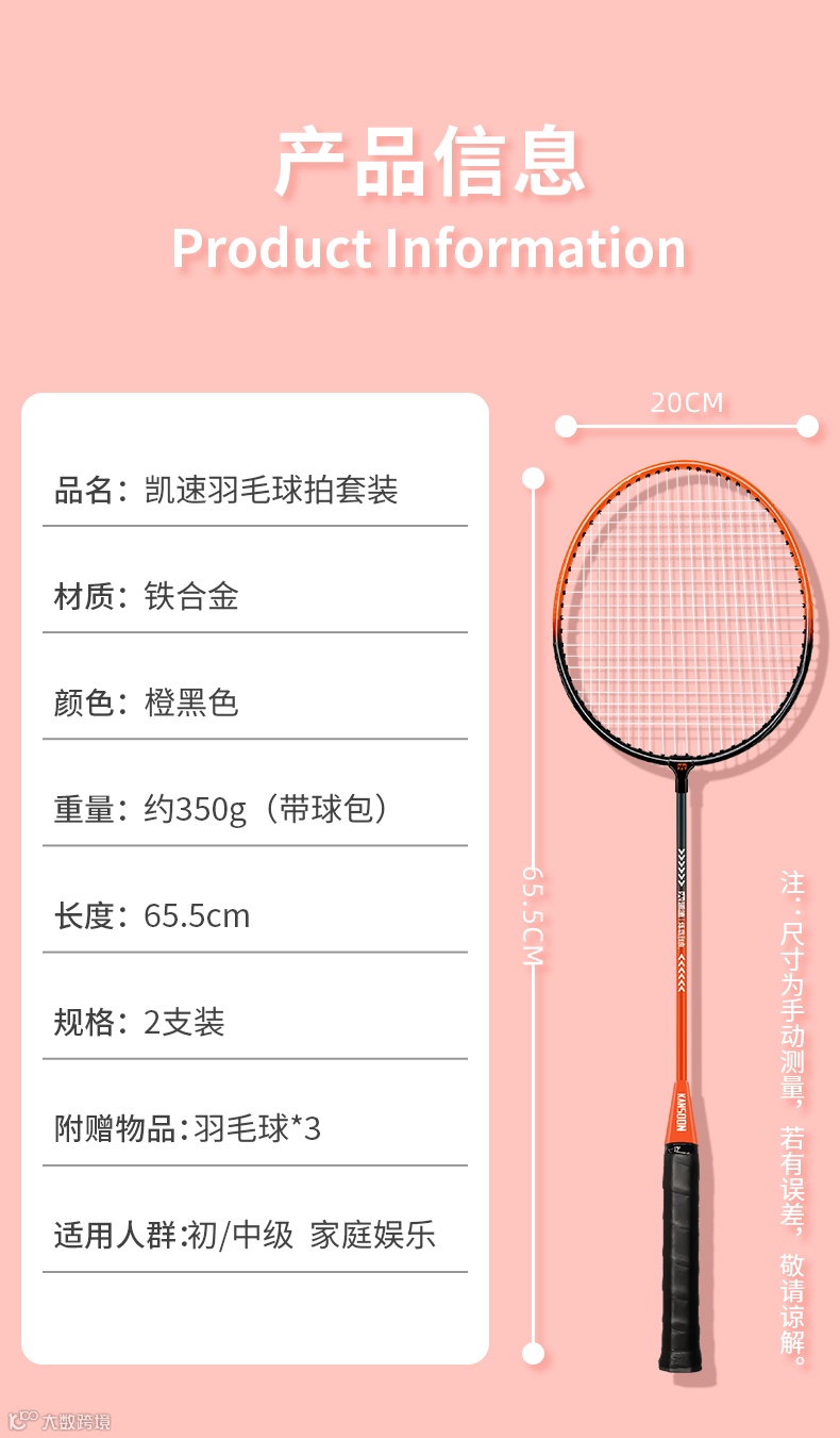 【品名】:凯速羽毛球拍套装(赠送3只羽毛球+1个球拍包)