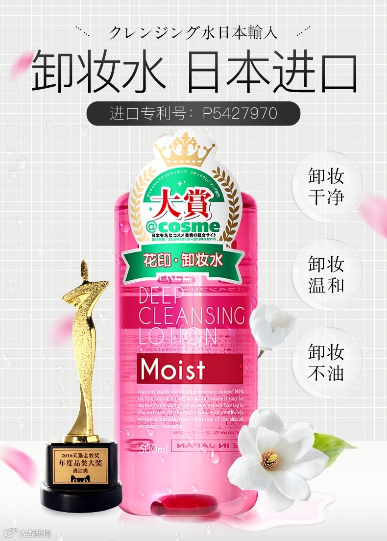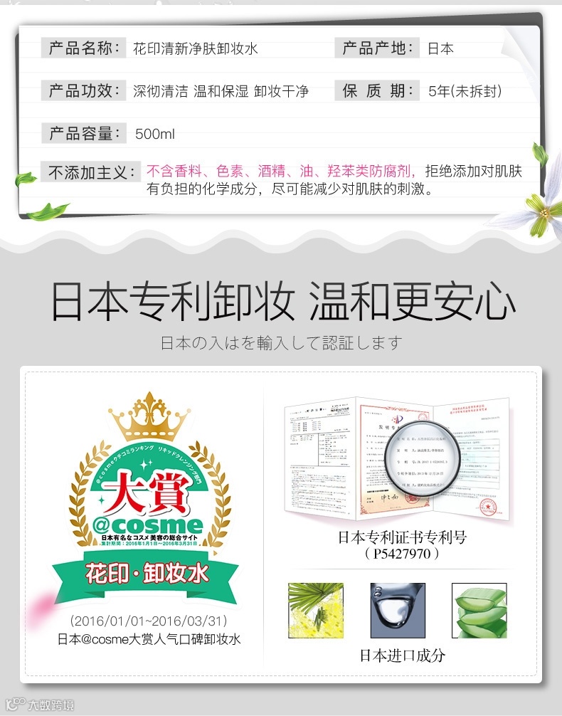 【粉丝群补贴】日本花印HANAJIRUSHI清新净颜卸妆水(滋养型)500ml 原价:129元 粉丝群补贴价:79元
