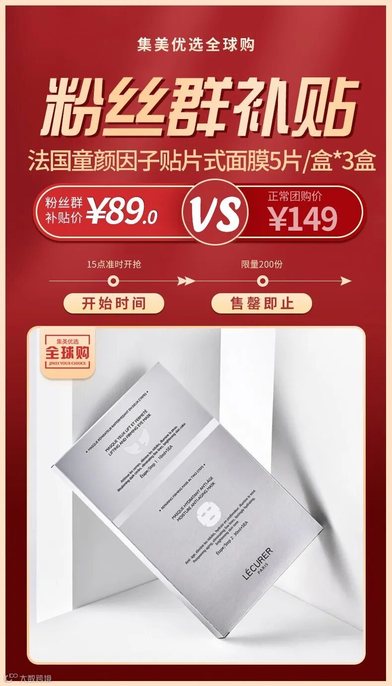 【粉丝群补贴】LECURER法国童颜因子贴片式面膜5片/盒*3盒