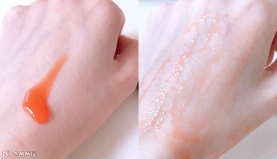 虾青素的质地清透,呈鲜艳的橘红色,液体流动性很强,延展性高。