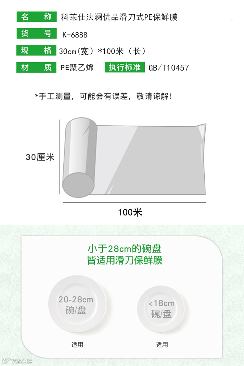 【大牌团购】科莱仕法澜优品滑刀式PE保鲜膜 买一送一 原价:49元