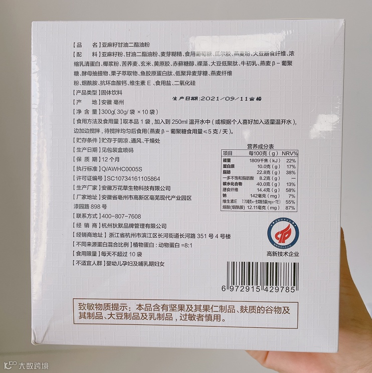 前段时间被抢爆的亚麻籽甘油二酯油粉又来啦!很多朋友都反馈这款代餐粉好入口又健康!
