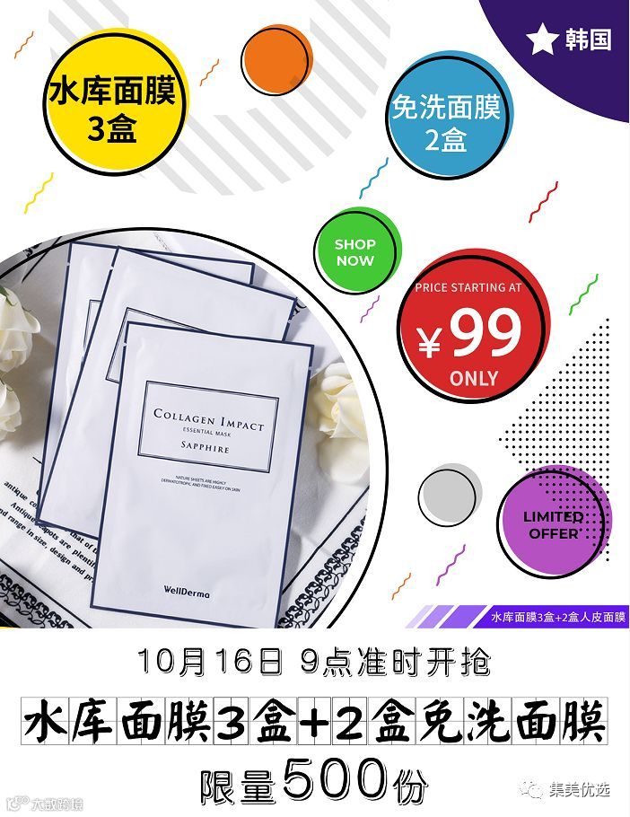 韩国梦蜗WellDerma海洋水库面膜3盒+2盒梦蜗胶原提拉精华面膜(俗称人皮面膜)