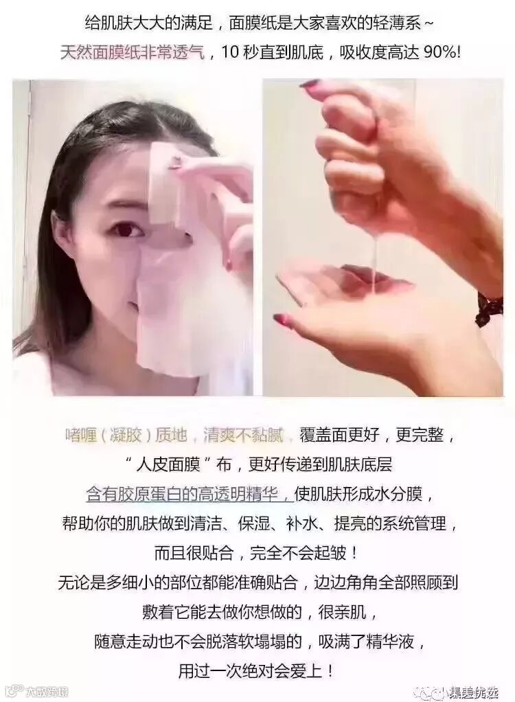俗称‘人皮面膜’因为它的面膜纸张厚度仅为‘0.1mm’