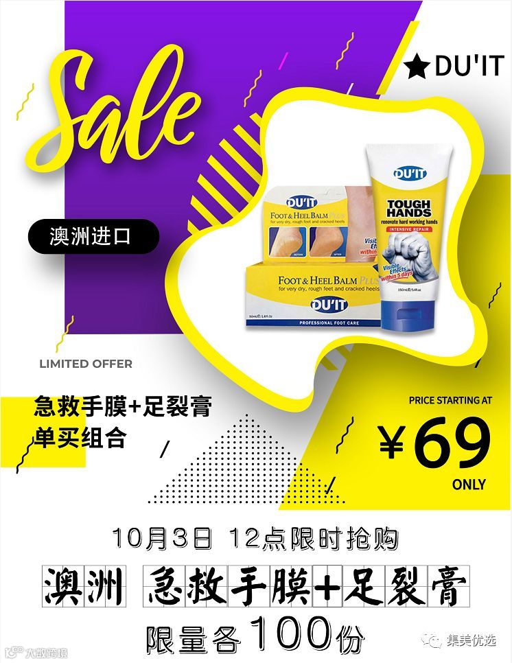 【福利团购】澳洲DU'IT 急救手膜+足裂膏 单买组合