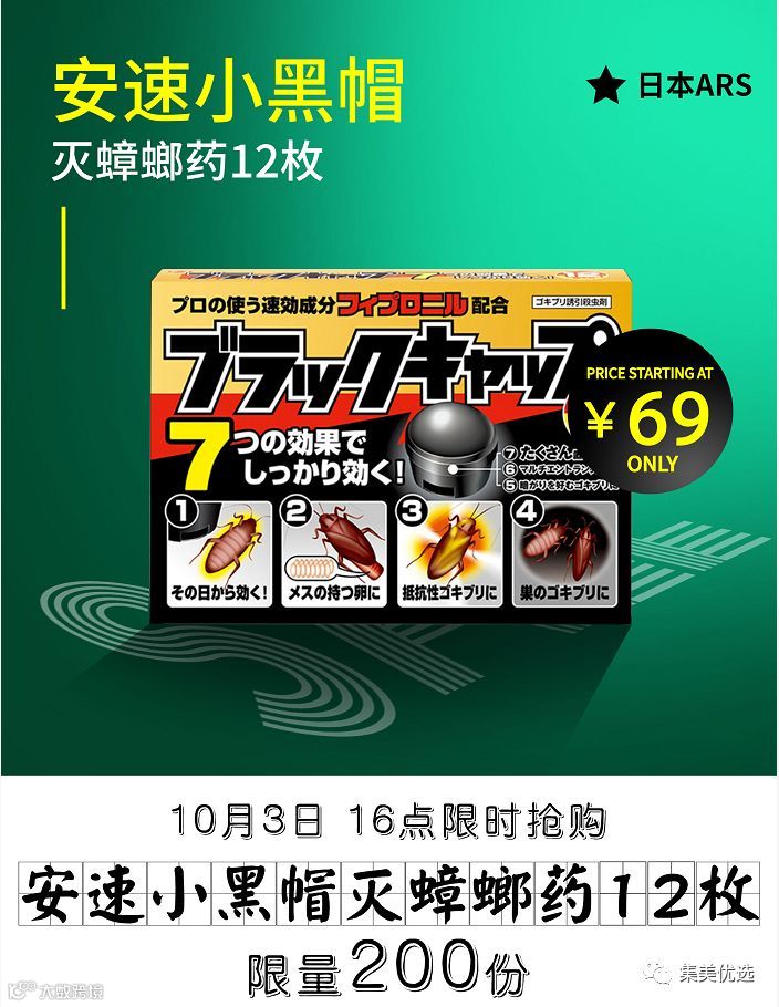 【福利团购】日本ARS安速小黑帽灭蟑螂药12枚