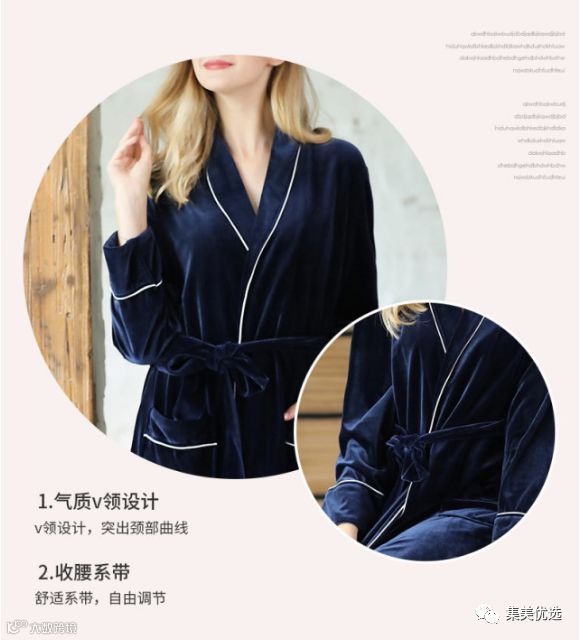 睡袍可以单穿 也可以搭配长裤一起 金丝绒的面料怎么看都很高级 上手摸特别舒服~~这种翻领的设计特别霸气!之前对睡衣的概念都停留在纯棉,其实丝绒面料一样亲肤 并且在款式上会更加有型有垂感 款式很大方简约