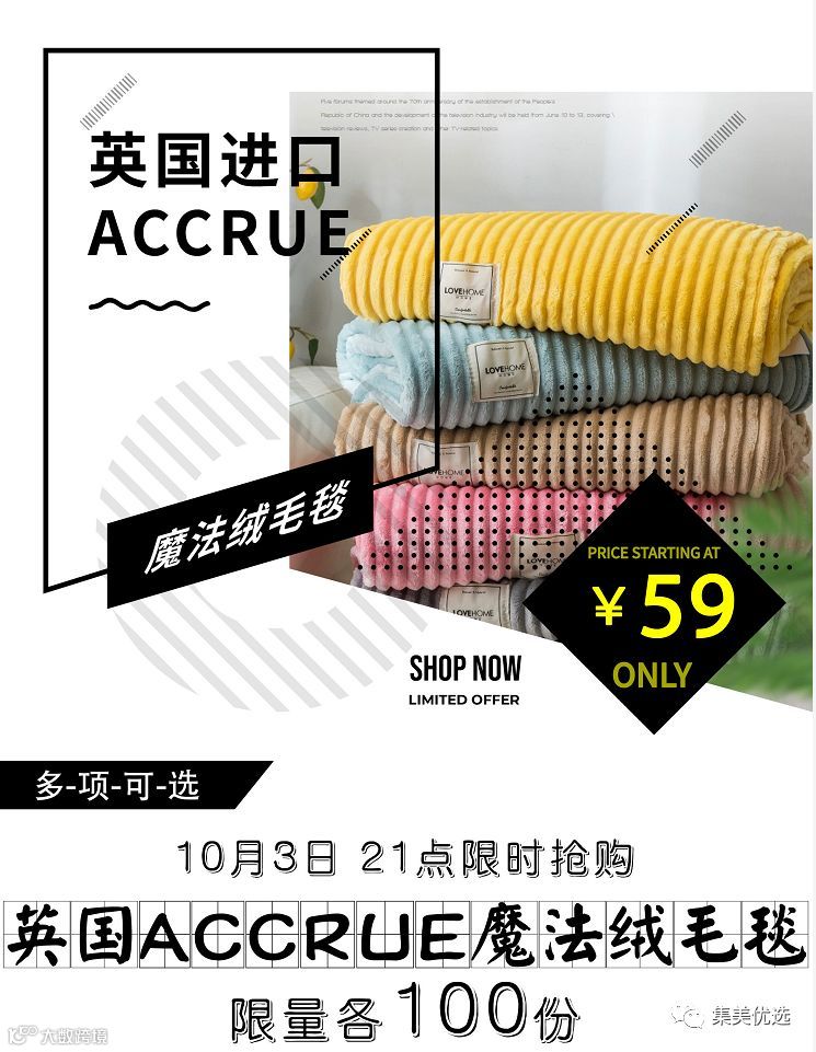 【福利团购】英国ACCRUE魔法绒毛毯150/180/200