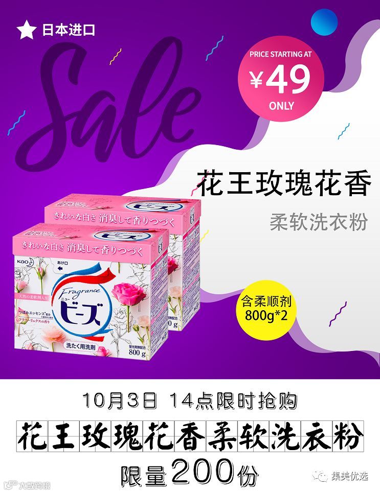 【福利团购】 品牌团购日本进口KAO花王玫瑰花香柔软洗衣粉 含柔顺剂 800g*2