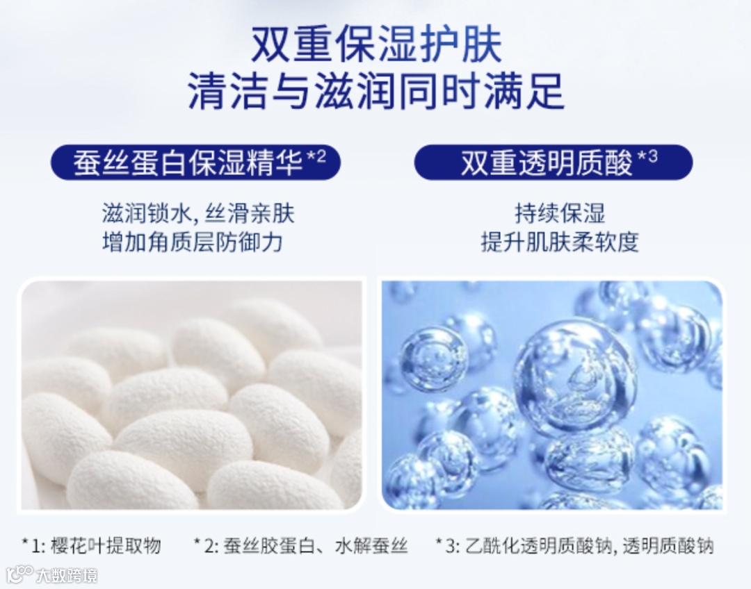 很多人用完洗面奶后会感觉到肌肤干干的,这款洗面奶还特别的添加了双重透明质酸,具有更高的保水能力,持续保持滋润肌肤~