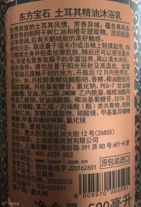 坚持用东方宝石Tesori D' oriente沐浴露