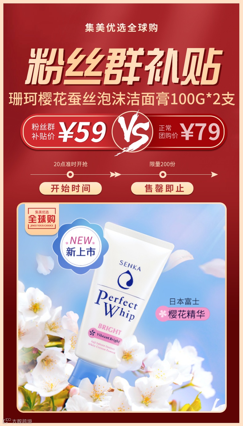 【粉丝群补贴】珊珂樱花蚕丝泡沫洁面膏100g*2支 原价:79元 粉丝群补贴价:59元