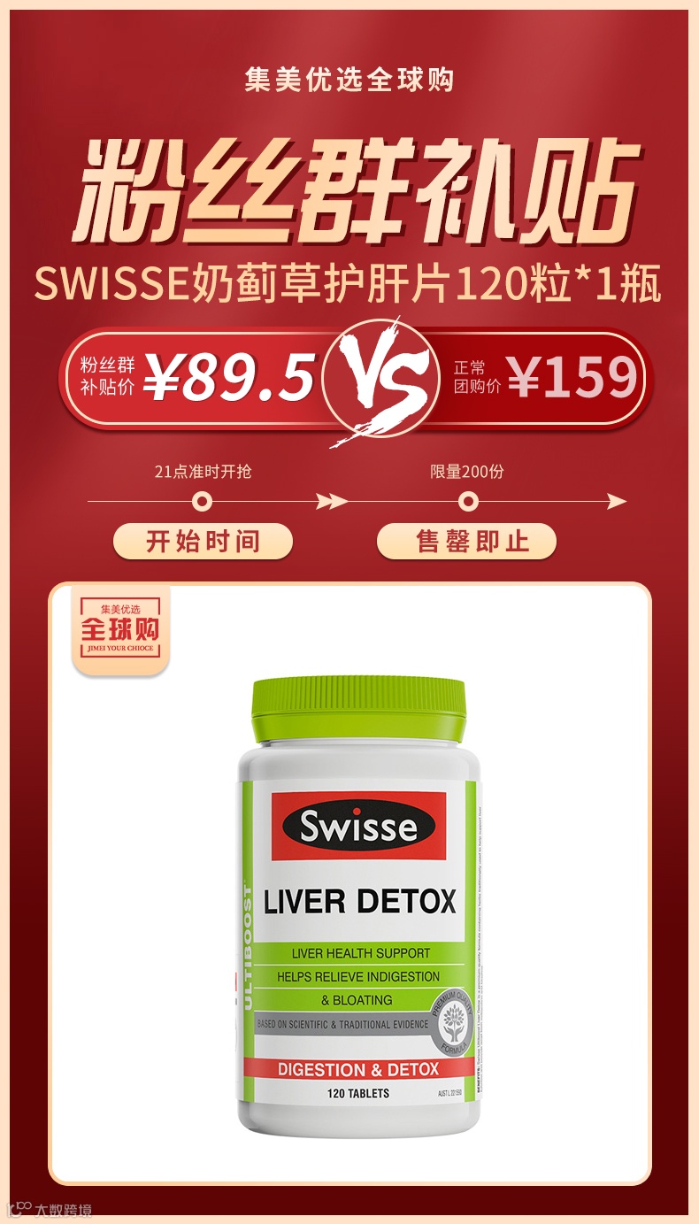【粉丝群补贴】swisse 奶蓟草 护肝片120粒 原价:159元 粉丝群补贴价:89.5元